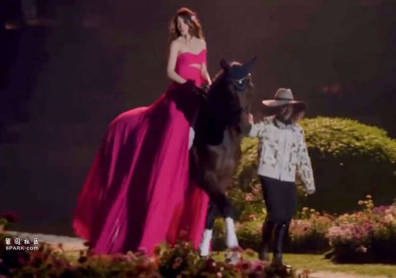 谷爱凌坐在马上,非常冷静。她身上的红色长裙也很是抢眼。全场都被这一耀眼的场景给惊到了,谷爱凌成功成为整个舞台的焦点。随后,谷爱凌下马,并缓缓走入红毯的中央地区。