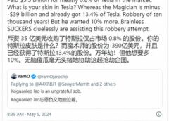阅读全文特斯拉大股东怒批马斯克 称其天价薪酬方案是“抢劫”