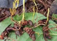 在云南雾气缭绕的山里,经常会有奇怪的物种暗自修行,长相足够让外地人产生幻觉。 远远看去,像极了一根被电线拧过的细黄鞭子,顶端挂着一颗棒槌,插在一只已经僵死的黄蜂胸口,微微颤抖,感觉…