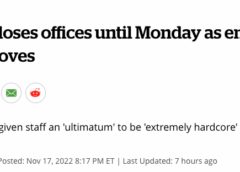 据CBC新闻报道,11月17日下午五点整刚过,马斯克就决定封锁推特的办公室了。 当天晚上,推特大楼的保安们将所有推特员工赶出了办公场所。 在11月21日(下周一)之前,任何推特员工…