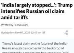 印度《印度斯坦时报》官网11月7日报道:美国总统特朗普在声称印度将很快暂停其与俄罗斯的石油贸易数天后,进一步强化了这一说法,现在称印度已“基本停止”(“largely stoppe…