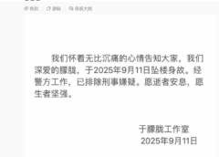 9月11日,演员于朦胧工作室发文,全文如下: 我们怀着无比沉痛的心情告知大家,我们深爱的朦胧,于2025年9月11日坠楼身故。经警方工作,已排除刑事嫌疑。愿逝者安息,愿生者坚强。 …