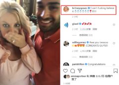 9月12日清早,小甜甜布兰妮在社交平台晒出男朋友Sam送的钻戒,并且佩戴在了无名指上,公开宣布与男友订婚。并配文写道:I can not fucking believe it.太难…