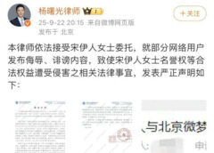22日晚,著名律师杨曙光在微博发布声明,表示依法接受演员宋伊人委托,“就部分网络用户发布侮辱、诽谤内容,致使宋伊人女士名誉权等合法权益遭受侵害之相关法律事宜,发表严正声明如下”。 …