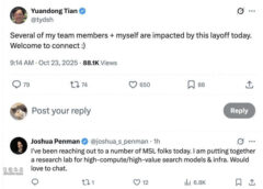 Meta AI巨震 大神田渊栋被裁 成批华人科学家失业 2025年10月23日 AllHotNews 据Axios 、CNBC等外媒报道,Meta本周三在其AI部门进行大规模裁员,约600个职位被削减,波及FAIR(基础人工智能实验室)、AI产品及基础设施团队。值得注意的是,裁员波… 阅读全文