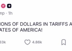美国总统特朗普8月7日在社交媒体平台“真实社交”上宣布了“对等关税”生效的消息。(图源:“真实社交”平台) “午夜已到!!!数亿美元的关税正滚滚流入美利坚合众国!” 美国总统特朗普…