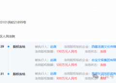 赵薇名下股权再遭到冻结。 企查查显示,近日,赵薇所持有的西藏龙薇文化传媒有限公司、合宝文娱集团有限公司、芜湖东润发投资有限责任公司股权被冻结,冻结股权数额分别为190万元人民币、5…