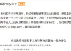 5月10日晚间,“重庆特斯拉维权车主”头条号发布了一条《致特斯拉高管的一封公开信》。 该维权车主在公开信中表示,“我是重庆驾驶特斯拉在车库突然加速刹不住车然后撞上墙壁特斯拉车子的购…