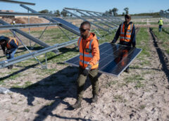 南非亚特兰蒂斯的太阳能设备安装现场,摄于6月。 Rodger Bosch/Agence France-Presse — Getty Images 中国向非洲出口的太阳能产品正在激增…