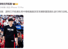 11月2日,NBA开拓者队官宣,球队已将中国球员、今年首轮16号秀杨瀚森下放至球队的发展联盟下属球队混音队进行例行训练。 开拓者队记透露,开拓者此举是为了让杨瀚森收获更多的训练时间…