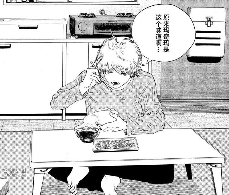 你以为boss被主角打败,留下几句遗言就能安心领盒饭去了。但在《电锯人》里,boss挂了还要被肢解,被做成生姜烧肉吃进肚子里。