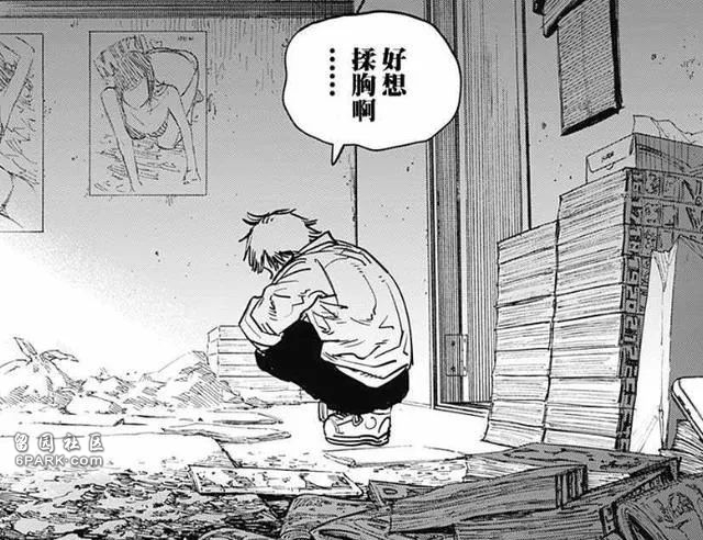 而在《电锯人》主角电次这里却是:“好想摸欧派啊”“想做你的狗”之类的。