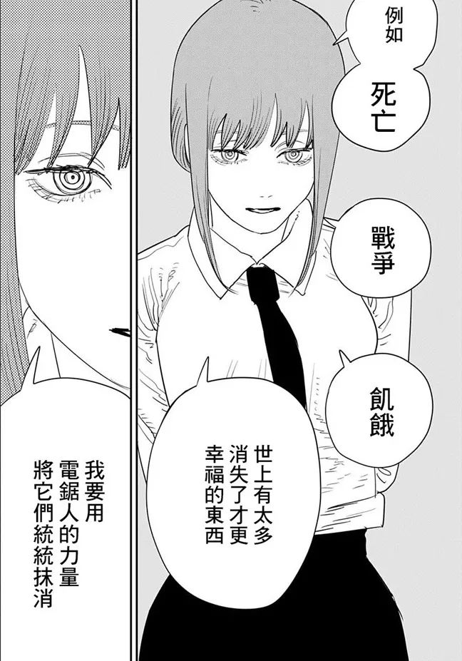 然而,玛奇玛还有一个身份,即最终的大boss——支配恶魔,她想要支配电锯人(电次)去消灭不好的恶魔(如死亡、战争、饥饿等恶魔),从而创造理想世界。