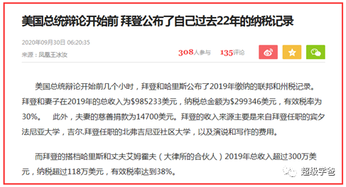 你看人家拜登和贺锦丽多会表演。拜登夫妇2019年应课税所得共94万4737美元,缴纳29万9346美元的税金,税率约31.6%。