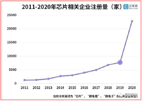 根据企查查的数据,2020年,我国新注册芯片企业2.28万家,同比大涨了195%。再次印证了那句话,美国禁什么我们什么就发展的最快。