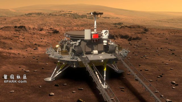 天问一号是首个成功登陆的中国火星探测器。这是祝融号火星车的示意图。