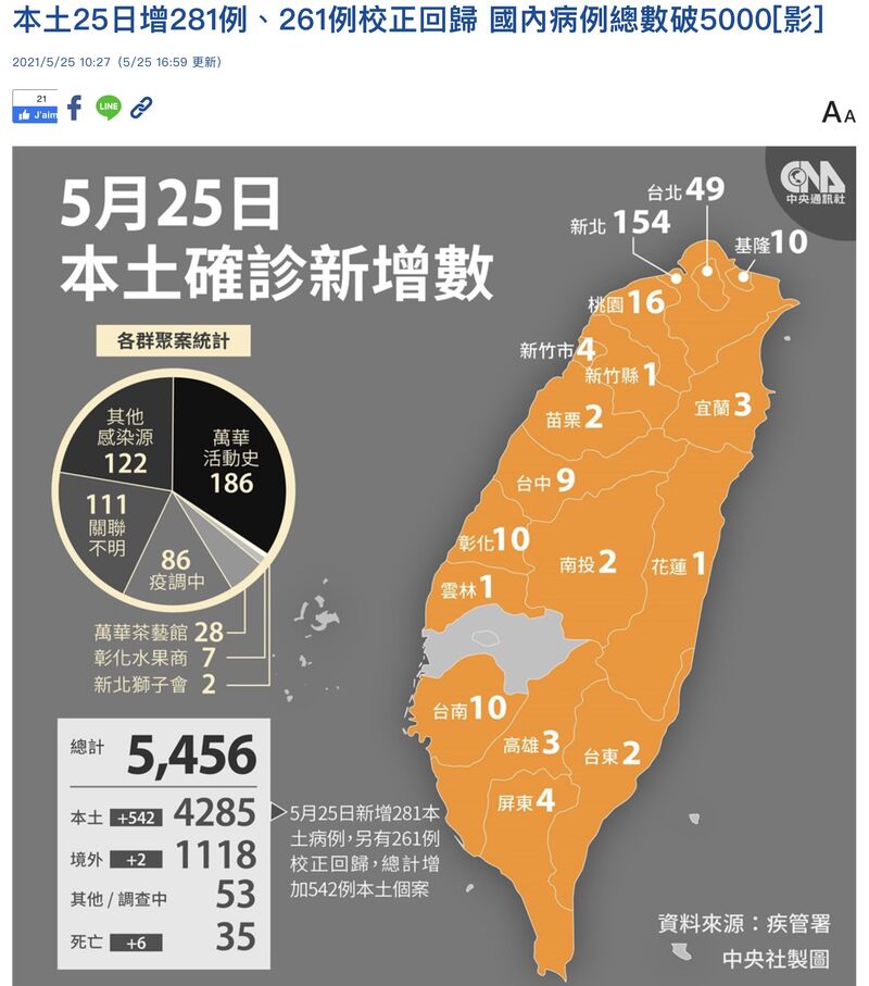 台湾地区疫情指挥中心5月22日公布新增321例本土病例之外,又添加了新增400例“校正回归”的确诊者。 何谓校正回归? 无非之前没有列入统计数据,如今列进去而已。 哎,这都什么事儿啊! ——疫情瞒得住就瞒,瞒不住就“校正回归”吗?