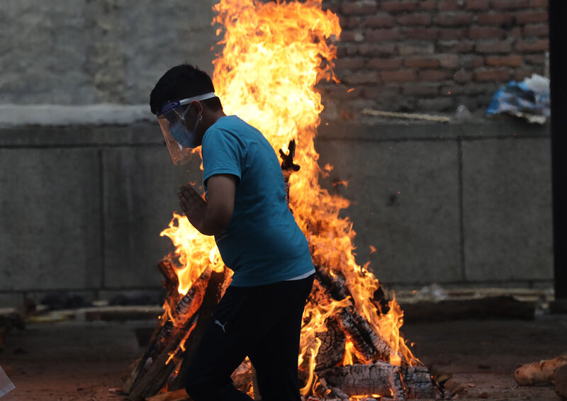 5月18日,印度新德里,火葬场火化新冠死难者遗体。 图自澎湃影像