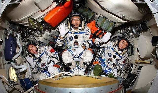 9月27日16时33分,神舟七号乘组按照指令,开始释放飞船轨道舱压力,景海鹏留守舱内监控飞船运行,翟志刚、刘伯明早已换好舱外航天服,准备打开舱门。
