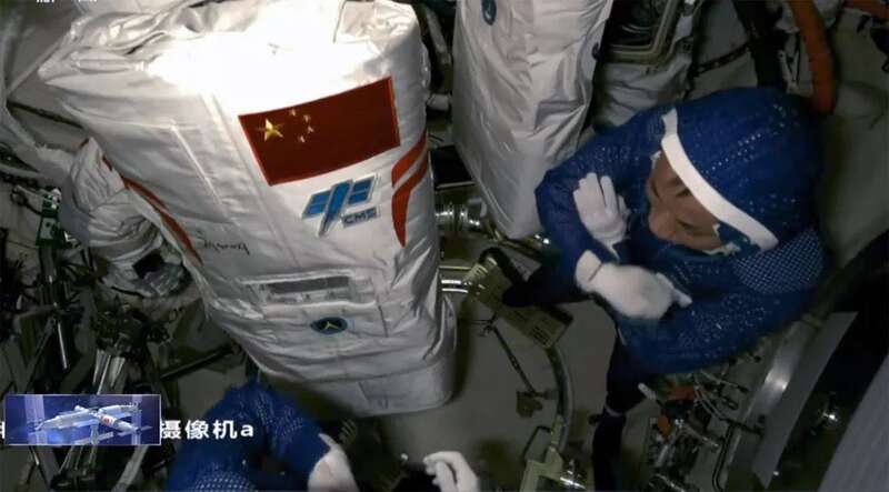 4日早上吃过早饭后,刘伯明、汤洪波在直径2.8米的空间站节点舱内,3分钟内进入厚重的舱外航天服,然后关闭与天和核心舱相连的双向承压舱门。