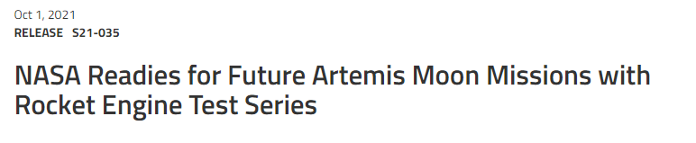 2021年10月1日,NASA在其官网宣布,已经完成了对SLS火箭引擎的一系列A-1标准测试,并做好了执行阿尔忒弥斯月球任务的准备。