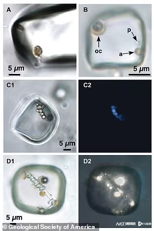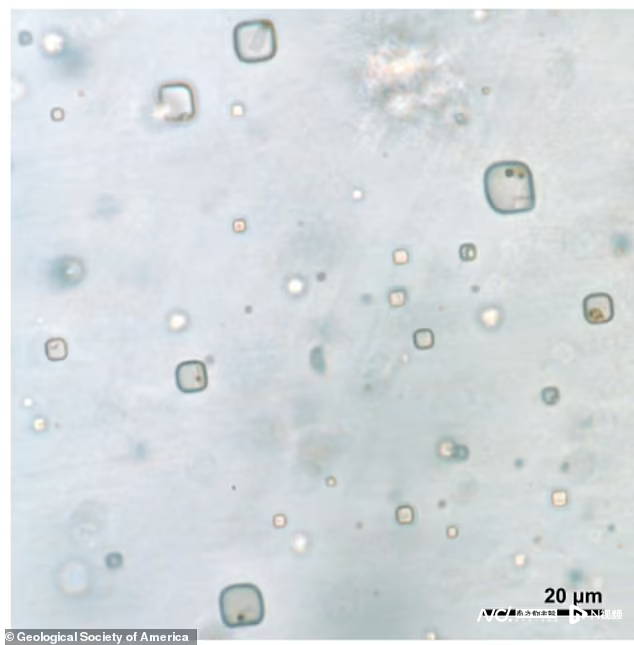 研究人员表示,晶体中的液体内含物可以作为微小菌落生长的微生境。