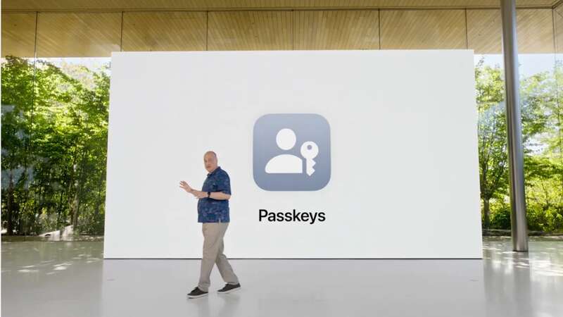 苹果在今年的 WWDC 大会上,介绍了一个无需用户手打繁琐密码的新功能——“通行密钥”(Passkeys)。有了它,用户不用再输入密码,直接使用 Face ID / Touch ID(面部识别 / 指纹识别)等方式,授权使用“通行密钥”,这时候用户在本地就生成了一个私钥。与此同时,平台服务器端也保留着一个用于验证的公钥,一旦这两者匹配,就能实现无密码登录。用户在这个过程中,只需要通过生物特征识别。