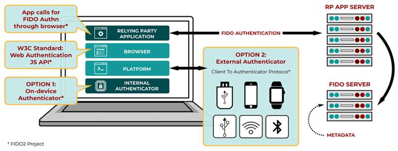 在过去数年中,FIDO 联盟推行过三种不同的无密码协议。其中,FIDO UAF 于 2014 年被提出:用户通过安装生物验证装置,实现诸如直接识别指纹并完成支付等操作。