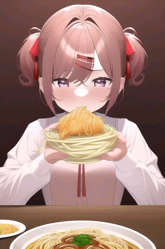 20最离谱的应该是这张,让AI画美少女吃面,没想到画出了面条炖美少女。