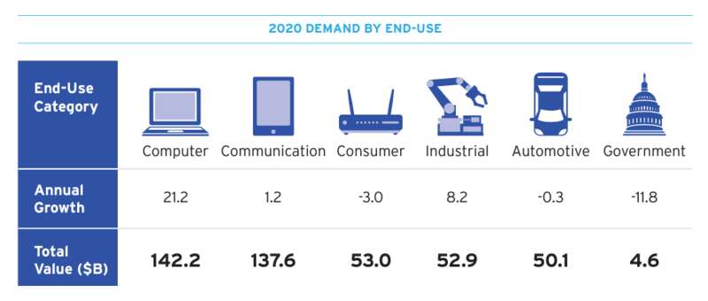 2020年世界芯片消费构成 图源:SIA