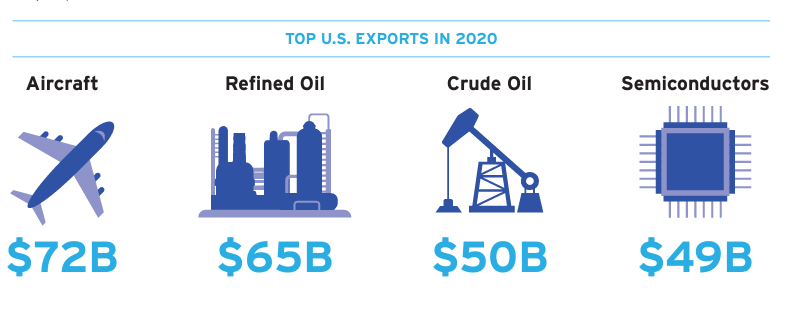 2020年美国最大的出口行业,半导体赫然名列前四 图源:SIA
