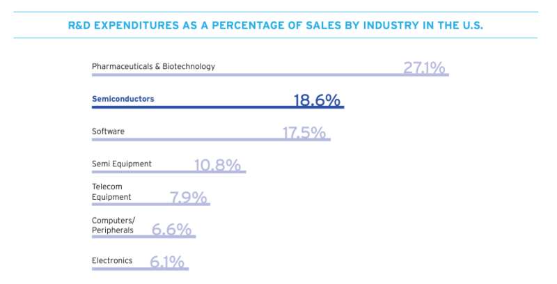 美国各行业研发投资占营收的比重 图源:SIA