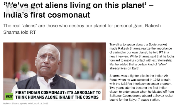 地球有外星人?印度首位宇航员语出惊人:是他们