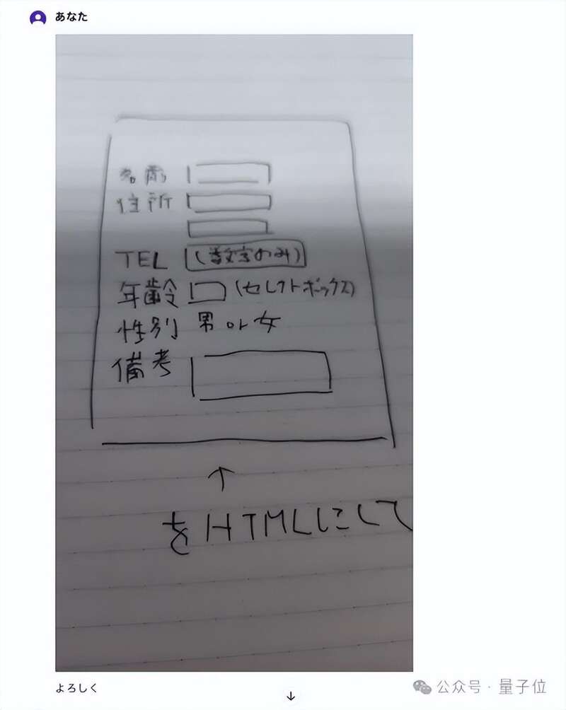 纸质原型转录初始HTML也有网友尝试利用GPT-4o,把写在纸上的原型转录为电脑内的初始HTML。