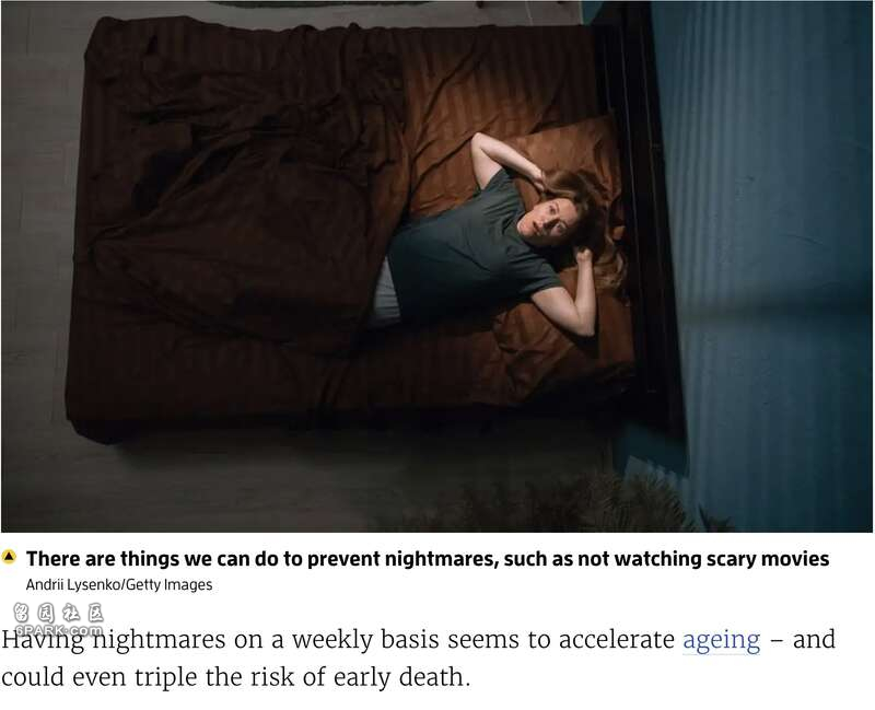 每周做噩梦似乎会加速衰老,甚至可能使早逝的风险高出两倍。