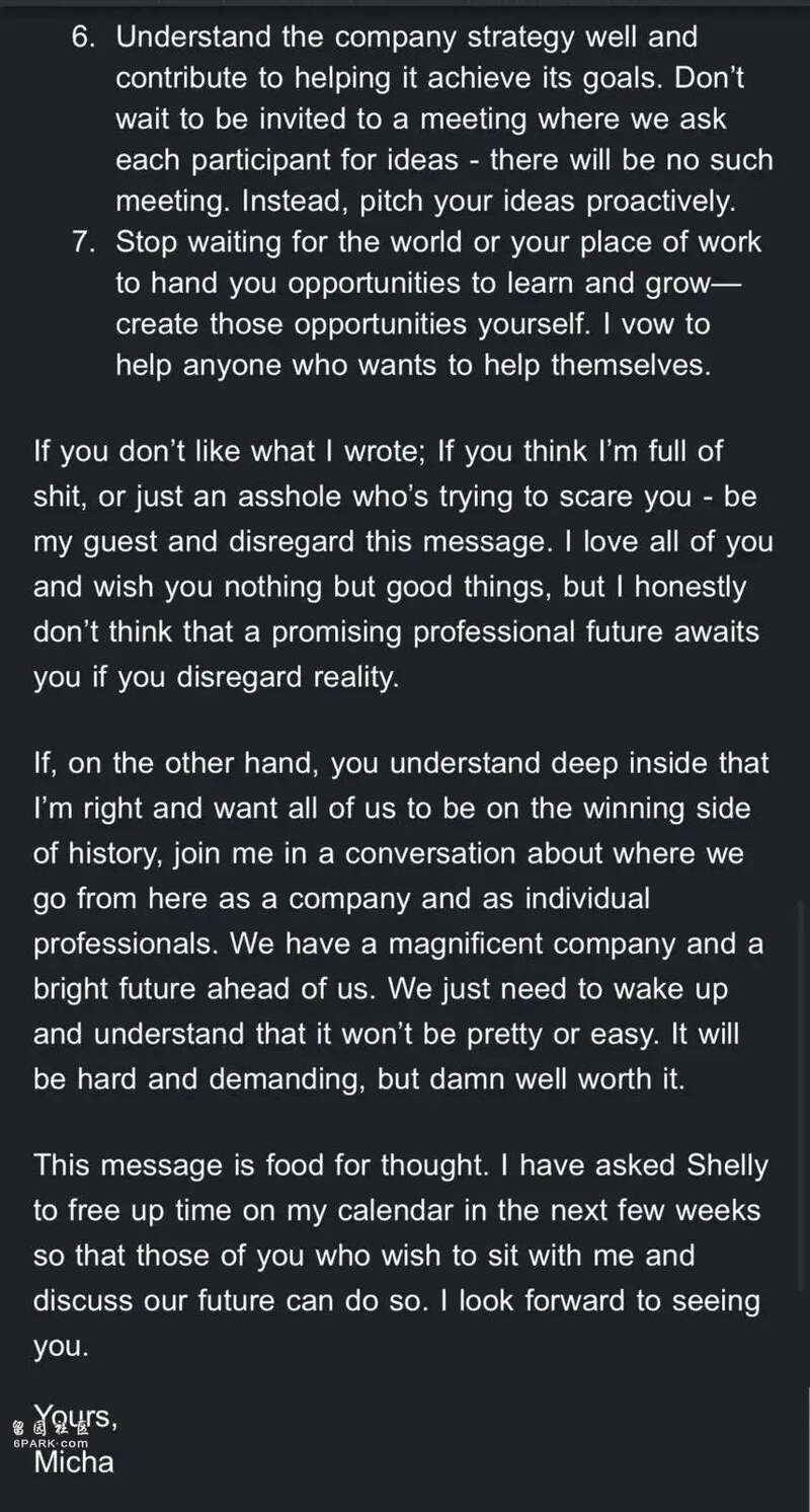 Micha Kaufman:但如果你自己压根不想变得更好,连最基本的时间和精力都不愿意投入,那别人帮不了你。我可以为你提供成长的资源,但我不是你爸,我不对你的人生负责。