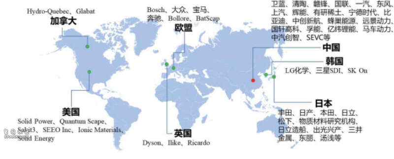 全球固态电池产业分布图。图片来源:中国全固态电池产学研协同创新平台网站