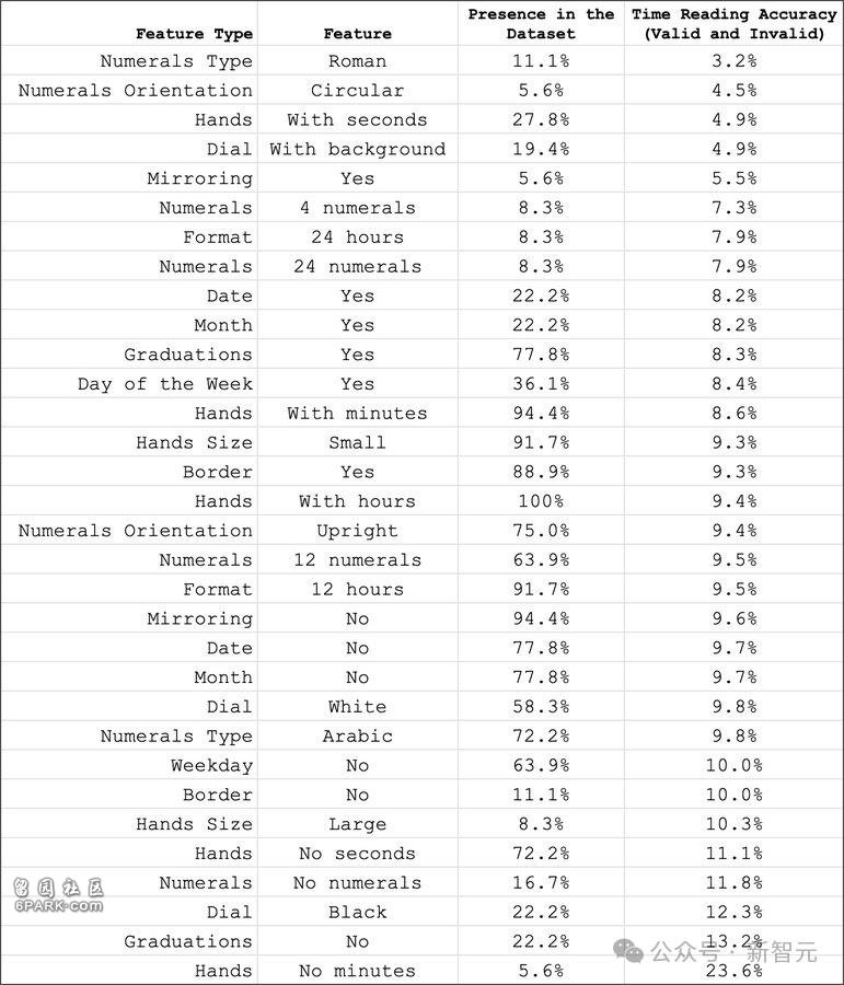 在原始数据集中,180个时钟里有37个属于无效(不可能存在)的时间。无论是人类还是模型,在识别「无效时间」时的成功率都更高: