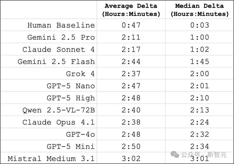 人类误差中位数仅3分钟,最佳模型却高达1小时较弱模型的误差约3小时,结合12小时制表盘循环特性,相当于随机噪声