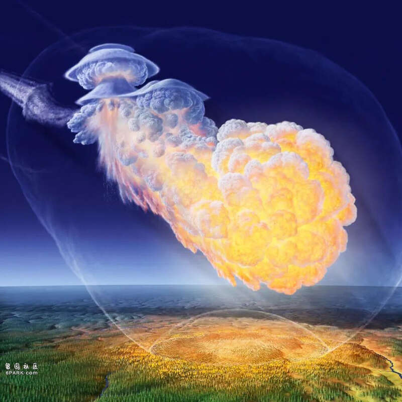 1908年,一颗直径约为40m的小行星在通古斯上空发生爆炸,导致西伯利亚约2000平方公里的树木被摧毁。