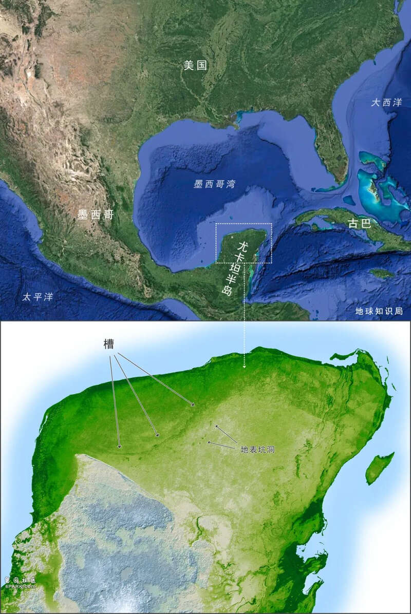 1991年,在墨西哥尤卡坦半岛发现了形成于白垩纪和第三纪末期的直径为200公里的陨石坑,研究表明该陨石坑是造成恐龙灭绝的小行星遗迹,被称为Chicxulub陨石坑。