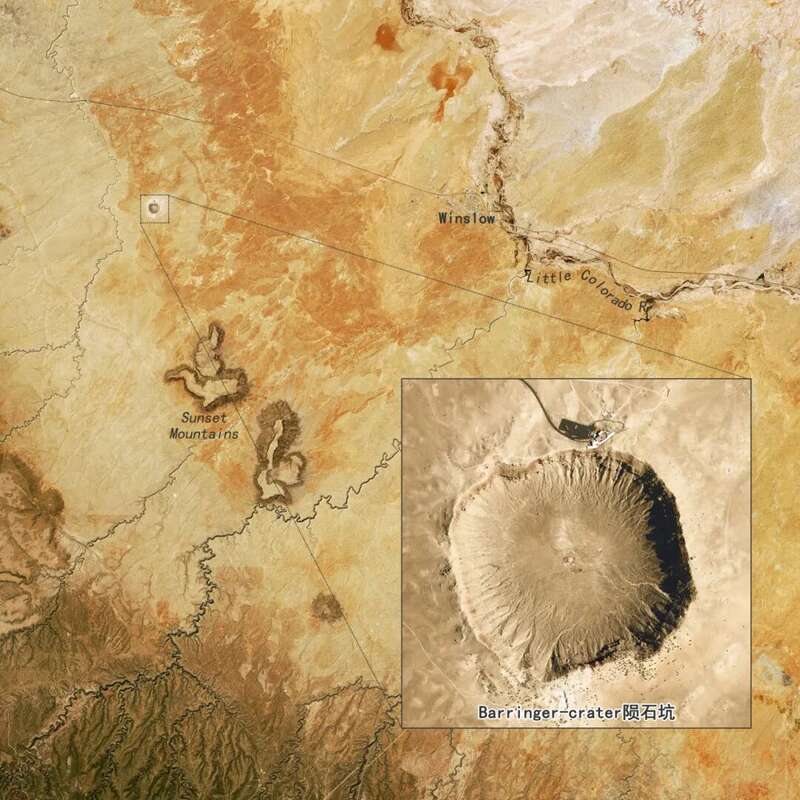 此外,美国亚利桑那州的Barringer-crater陨石坑是5万年前一颗直径约50m的小行星撞击地球造成的。