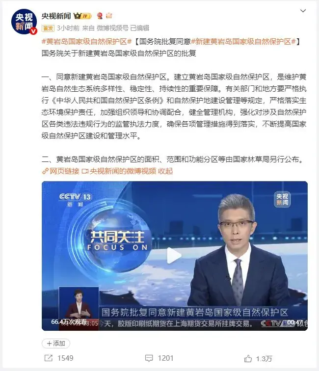 9月10日,国家林业和草原局公布黄岩岛国家级自然保护区面积、范围和功能分区。详情: