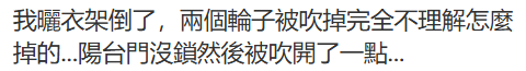 不少华人在社交媒体分享,昨晚由于外面的风太大,吵得一夜都睡不着。