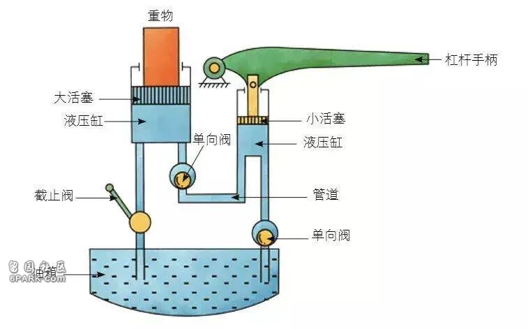 比如很多人都见过的千斤顶,实际上就是个小的液压系统,能将小力积累,产生可以托举重物的大力。