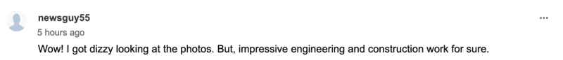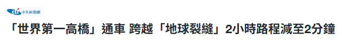 值得注意的是,这座世界第一高桥的高度尤其令网友震惊:“哇!我光是看照片就已经感到眩晕了,但毫无疑问,这是一项令人印象深刻的工程和建筑成就。”↓