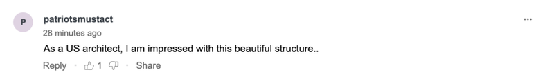 有自称是建筑师的网友称:“作为一名美国建筑师,我对这座美丽的建筑印象深刻。”↓