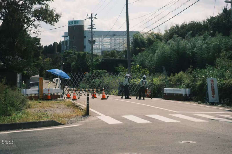 被封闭的区域基本都是当前还未能完成辐射清理的区域,或者是通往福岛核电站的必经区域。当时在路过一个路口时,我还发现罕见地有两个穿着制服值班的守卫。但直到我回国重新整理这段游记时,才意识到照片背后的那座双叶医院和紧邻的养老院,曾发生过多么骇人的惨剧。