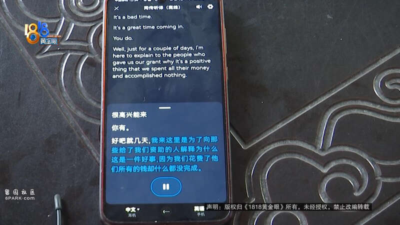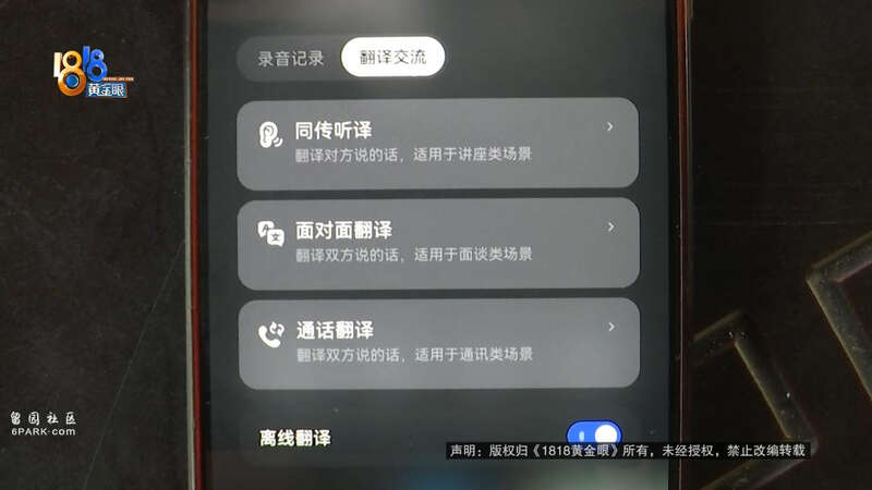 耳机的翻译准确率到底如何?开启“离线翻译”后选择“面对面翻译”,记者用一段美剧的对话试了一下,播放音频的手机就放在丛先生的手机旁边。