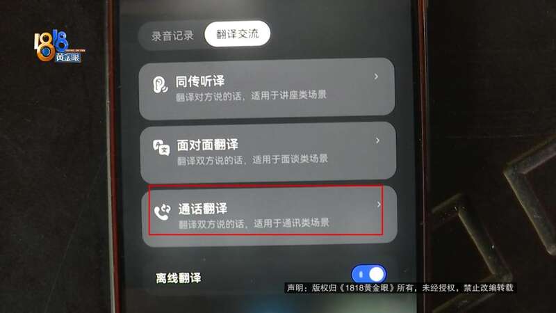 此外,还有适用于讲座类场景的“同传听译”,适用于通讯类场景的“通话翻译”。